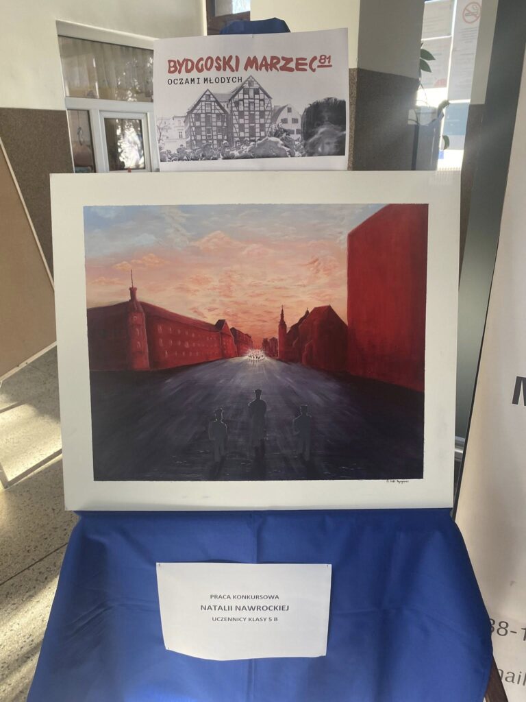 Uczennica klasy 5b, Natalia Nawrocka, wzięła udział w konkursie pt. „Bydgoski Marzec 1981 r. oczami młodych”, organizowanym przez Referat Edukacji Narodowej Delegatury IPN w Bydgoszczy z okazji 45. rocznicy wydarzeń Bydgoskiego Marca 1981 r. Jej praca została zaprezentowana w holu naszej szkoły, gdzie mogą ją obejrzeć uczniowie, nauczyciele oraz pracownicy szkoły.